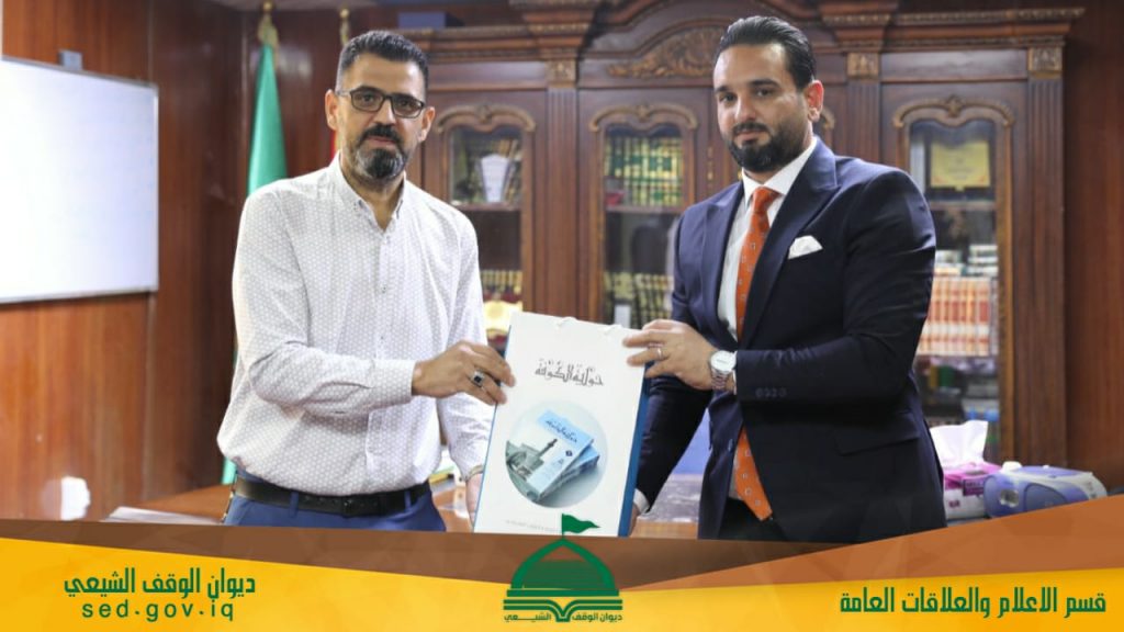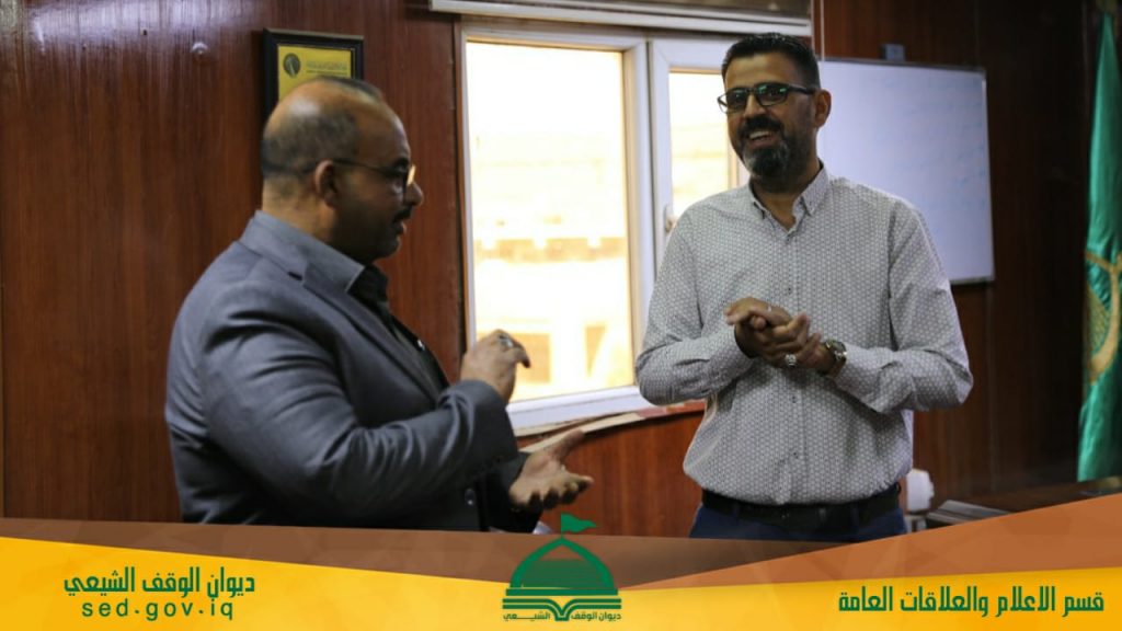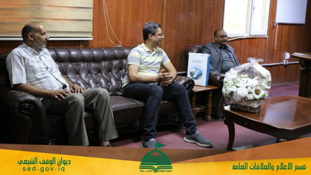 استقبل مدير قسم الاعلام والعلاقات العامة السيد حسن الفرطوسي الوفد المهنئ من الامانة العامة لمسجد الكوفة المعظم بمناسبة افتتاح “اذاعة الهداة (ع)” التابعة للقسم.