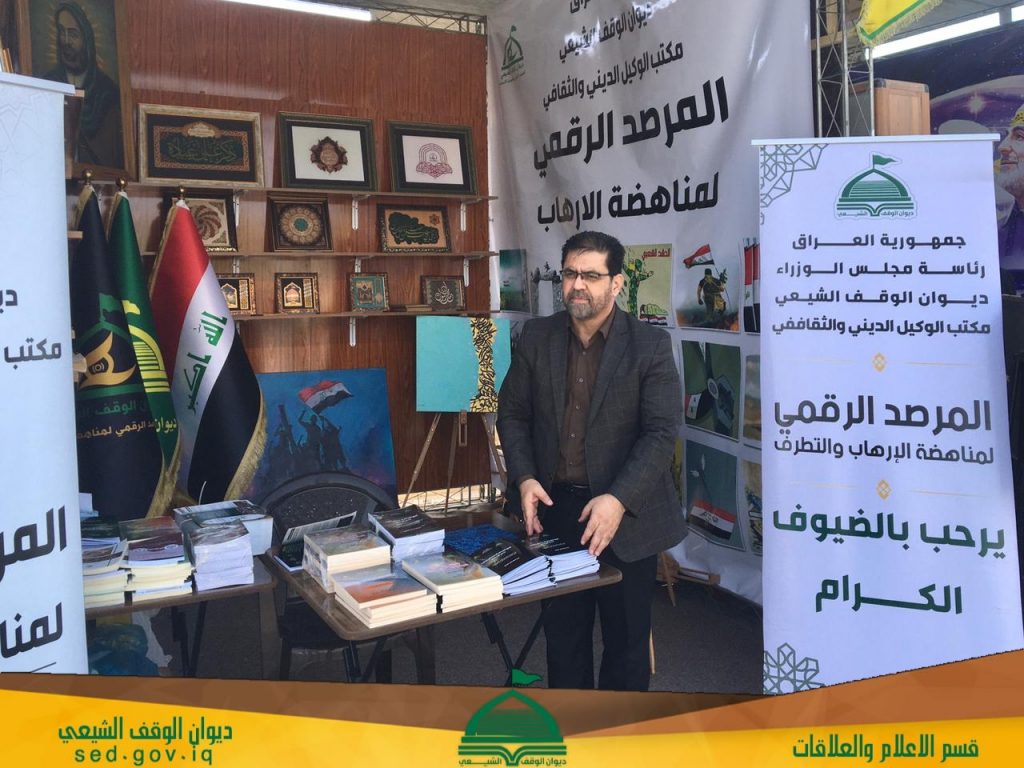 شارك المرصد الرقمي لمناهضة الارهhاب في ديوان الوقف الشيعي بجناح فكري ثقافي عبر المخيم الثقافي الفني لقاد١١ة النص١١ر الذي يمتد من ٢٠٢٢/١٢/١٥ لغاية ٢٠٢٢/١٢/٢٣ صباحا ومساء .. وقال الاستاذ عزت عبدالله الموسوي مدير المرصد ان مشاركتنا تأتي بتوجيه من قبل الدكتور حيدر الشمري رئيس ديوان الوقف الشيعي واشراف الوكيل الديني والثقافي الدكتور احسان احمد ، مشيرا الى جناح الوقف يتضمن عرض لوحات فنية ومخطوطات نادرة واصدارات كتب حديثة خاصة بالمرصد .. وقد شهد جناح المرصد الرقمي اقبالا واسعا وحضورا فاعلا لكثير من الشخصيات الرسمية والمؤسسات الحكومية والمجتمعية اضافة الى جهات ومنظمات غير حكومية.