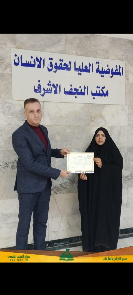 بتوجيه من مدير الوقف الشيعي في النجف الاشوف حيدر العذاري شاركت وحدة تمكين المرأة في مديرية الوقف الشيعي في النجف الاشرف في ورشة العمل التي اقيمت برعاية المفوضية العليا لحقوق الانسان في المحافظة التي اقيمت بعنوان( اليوم العالمي للقضاء على العنف ضد المراة ).