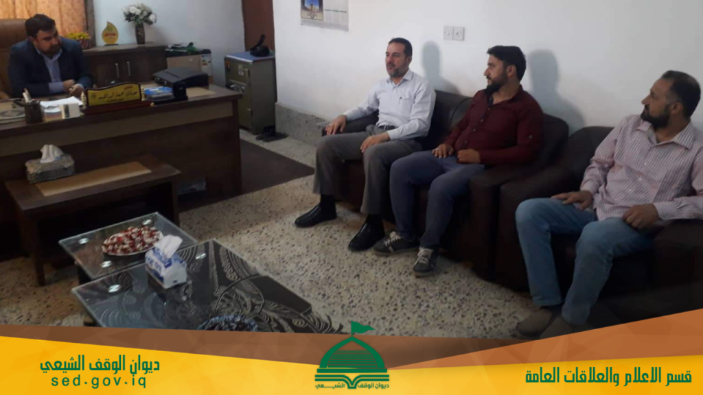 بحث مدير الوقف الشيعي في تلعفر الاستاذ عدنان الدامرجي مع مدير مدير الوقف السني في تلعفر الأستاذ رياض القبلان والوفد المرافق له مجمل القضايا والمواضيع التي تخص عمل الوقفين في القضاء.