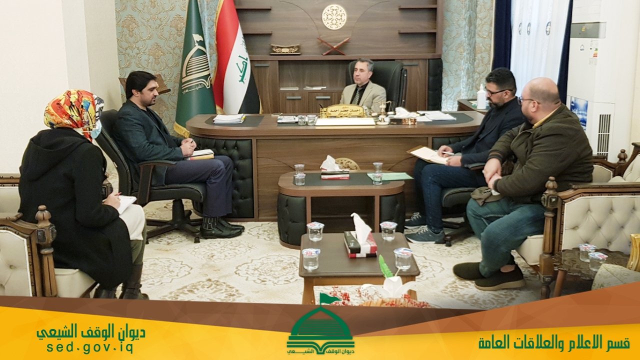 استقبل الوكيل الديني والثقافي لديوان الوقف الشيعي الدكتور إحسان جعفر في مكتبه مدير مكتب الإذاعة والتلفزيون الإيراني في العراق السيد مصطفى الموسوي بحضور مدير قسم الاعلام والعلاقات العامة الأستاذ حسن الفرطوسي ومعاونه الأستاذ مهند صالح .