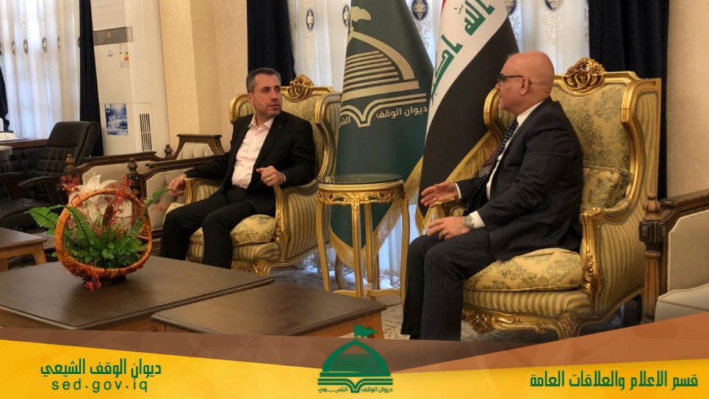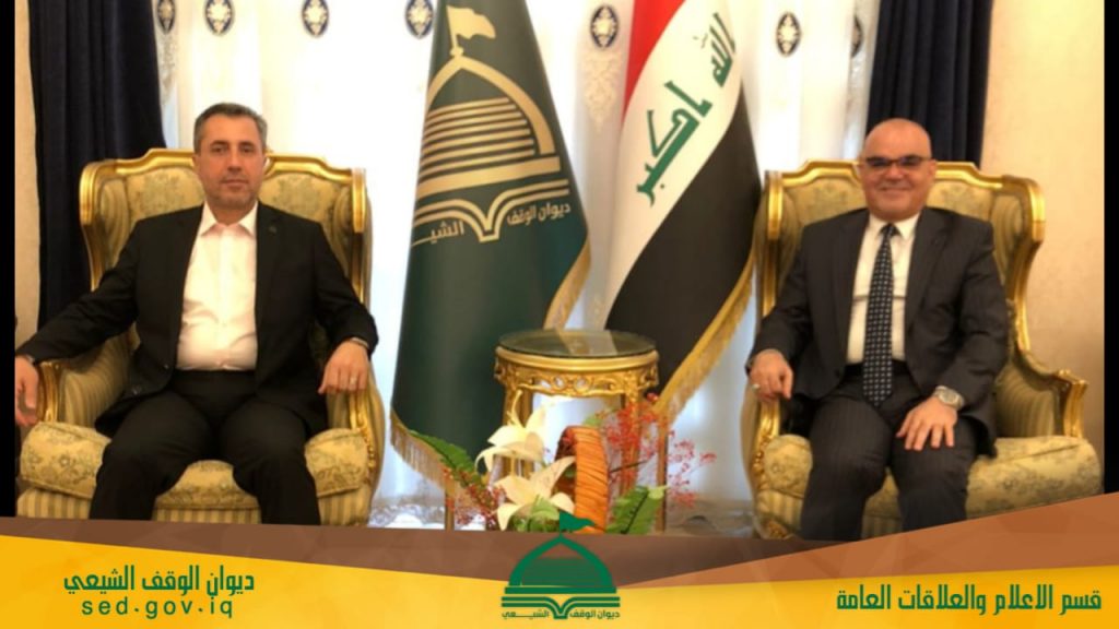 استقبل السيد الوكيل الديني والثقافي في ديوان الوقف الشيعي الدكتور إحسان جعفر أحمد السيد مديرعام مديرية شهداء الحshد الشعبي في مؤسسة الشهداء الأستاذ طارق المندلاوي, اليوم في مكتبه .