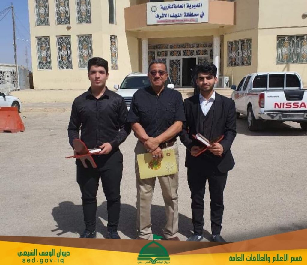 هذا وقدم مدير عام التربية شهادات تقديرية ودروع الى الطلبة الفائزين والى مدرس الاسلامي الاستاذ علي الخرسان لجهوده في انجاح هذه الفعالية القرآنية ولأحراز المدرسة المرتبة الثانية مثمنا مشاركة مدارس الوقف الشيعي في هذه المسابقة وفي العديد من الفعاليات والانشطة الثقافية والعلمية التي تقيمها مديرية التربية في المحافظة.