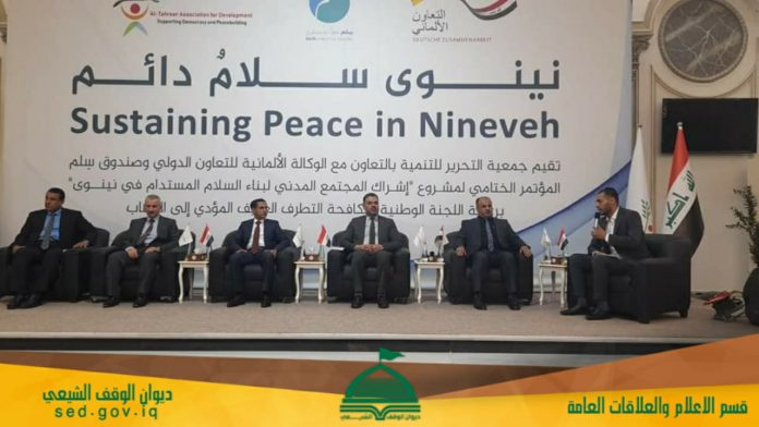بدعوة من جمعية التحرير للتنمية والوكالة الألمانية للتعاون الدولي شارك مدير الوقف الشيعي في نينوى الاستاذ باسم محمد البياتي في المؤتمر الختامي لمشروع إشراك المجتمع المدني ( لبناء السلام المستدام في نينوى) والذي شهد حضور رسمي حكومي وشخصيات سياسية و أكاديمية وأمنية ومدراء عدد من الدوائر وحضور جماهيري غفير.