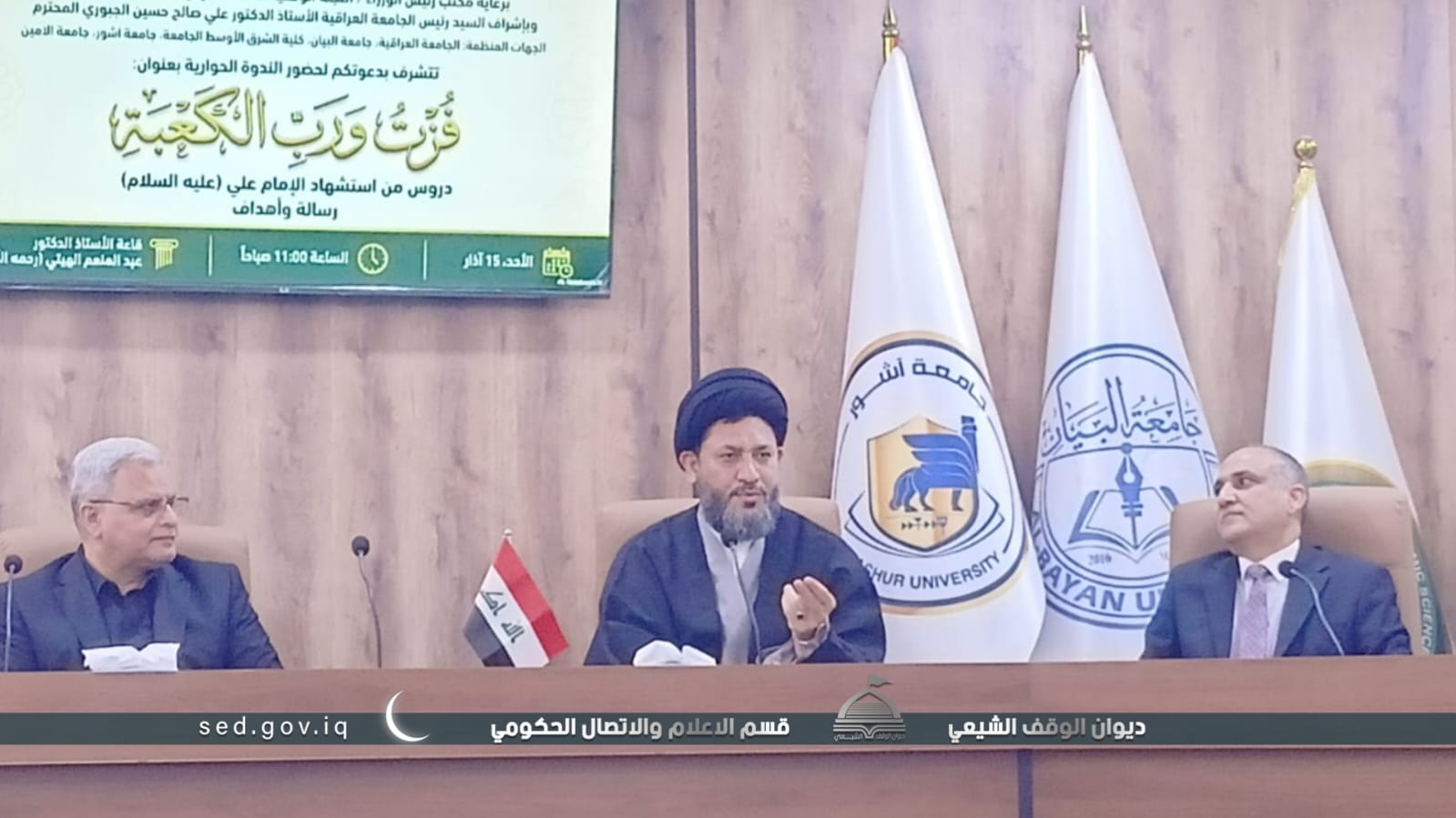 ممثل ديوان الوقف الشيعي يلقي محاضرة عن أمير المؤمنين (ع) في ندوة للجامعة العراقية