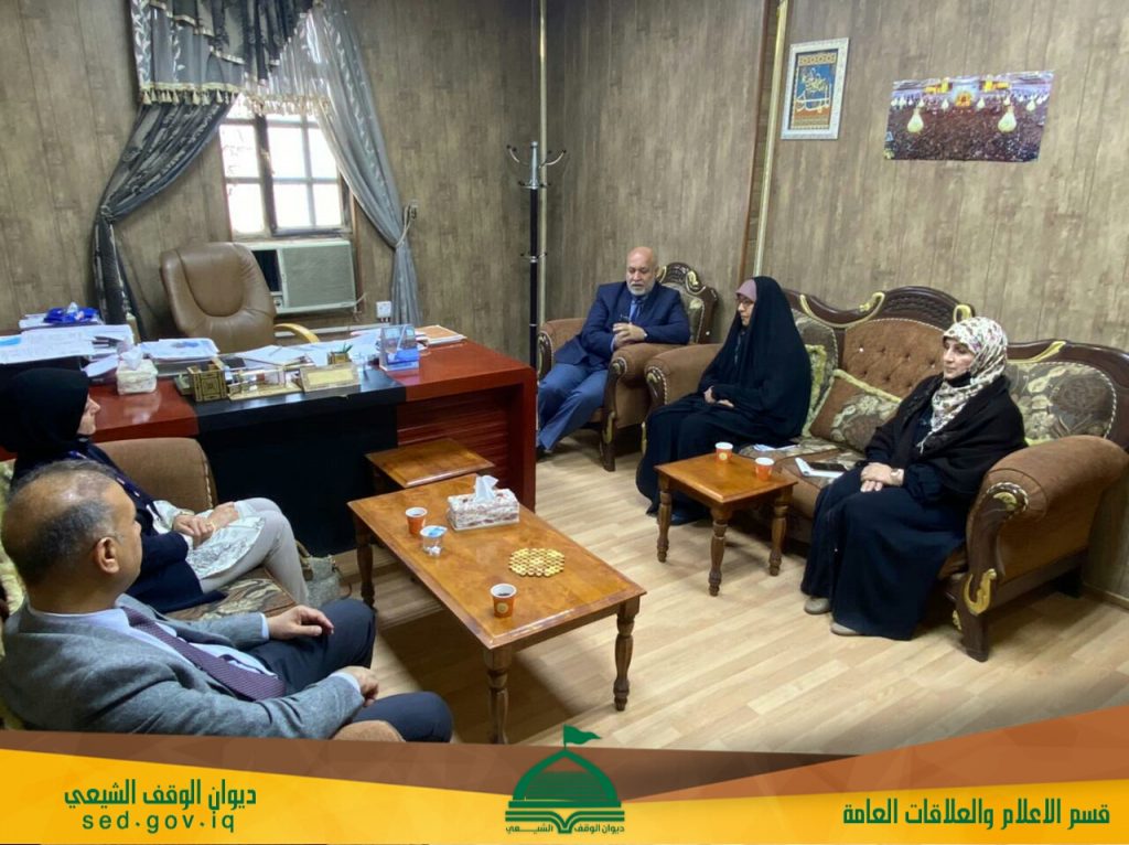 التقى مدير عام دائرة التخطيط والمتابعة في ديوان الوقف الشيعي السيد علي عكاب حنيش و مسؤولة قسم تمكين المرأة ومسؤولة قسم الارشاد في التعليم الديني وفدا من وزارة الخارجية العراقية الذي ضم مسؤول حقوق الإنسان والسكرتير الثالث لوزير الخارجية على هامش الندوة التي اقيمت تحت عنوان(.المشاركه الفاعله في تعزيز المراة في الامن والسلام) في.بنايه الديوان في باب المعظم في قاعه سيده النساء.